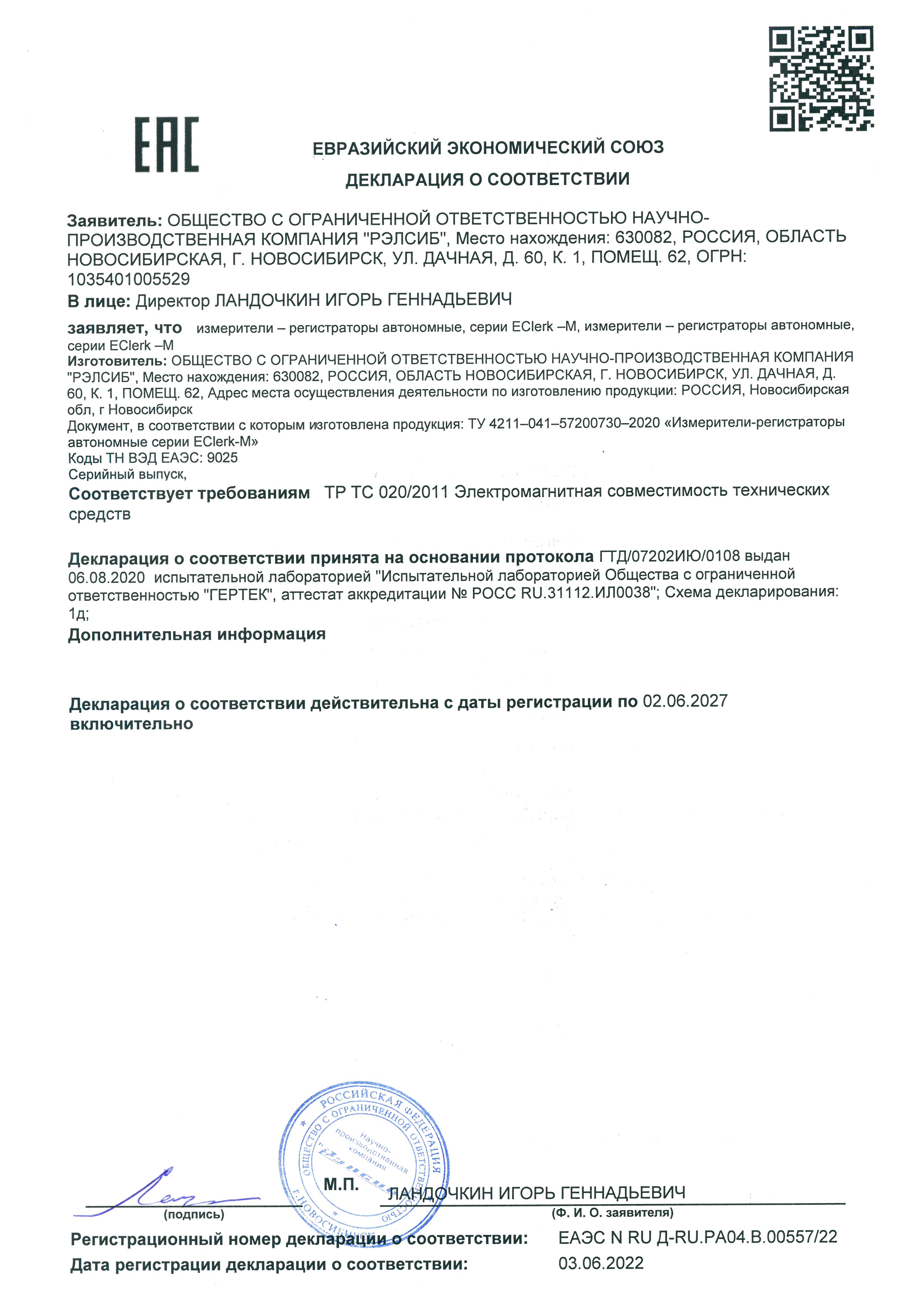 Декларация соответствия требованиям технического регламента Таможенного союза