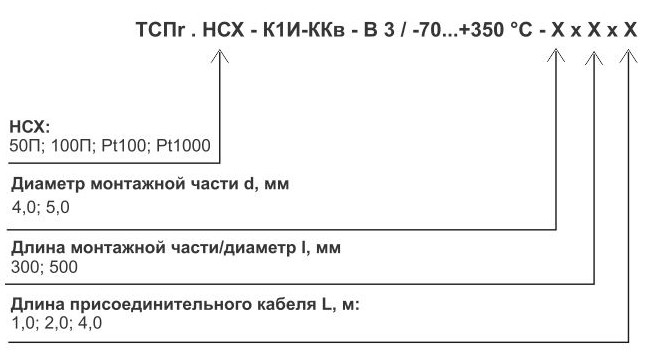 | Обозначение | Диаметр монтажной части, d, мм | Длина монтажной части, l, мм | Длина кабеля, L, м |
