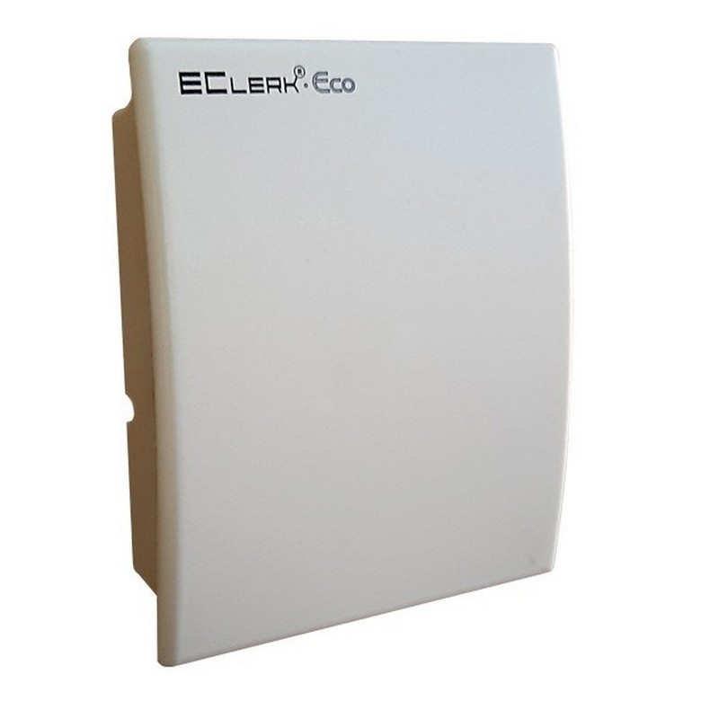 Обладает всеми функциональными возможностями EClerk-Eco-M-RHTC-11, но не имеет цифрового дисплея. Подходит для применения в школах, больницах, и прочих публичных учреждениях, в случае если нет необходимости считывать данные с дисплея в реальном времени, или необходим незаметный монтаж. Прибор регистрирует показания и, при наличии выходного интерфейса данных, отправляет показания в систему контроля микроклимата или во внешний архив.