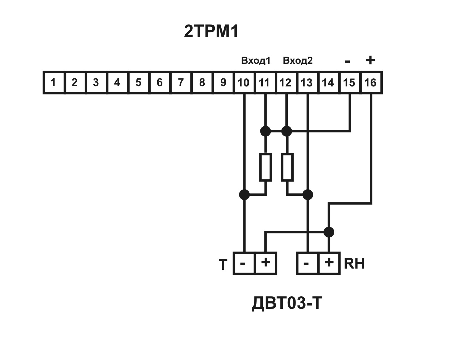 Пример подключения датчика влажности к измерителю ОВЕН 2ТРМ1
