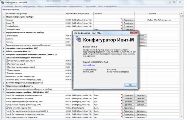 Программа-конфигуратор для измерителей влажности и температуры Ивит-М 1.8.1.1