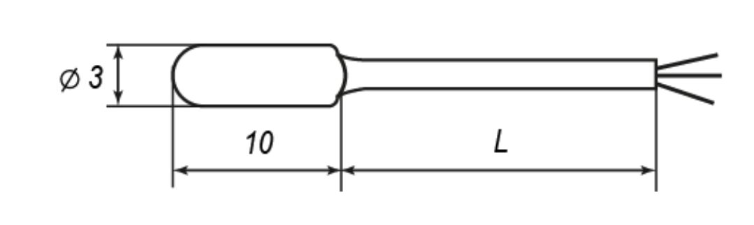 Миниатюрный металло-стеклянный корпус 3х10 мм. Предназначены для контроля температуры воздуха и неагрессивных газов, массивных изделий с установкой в «гнездо», например, электродвигателей, подшипников, радиаторов силовых, полупроводниковых приборов и т.д.
