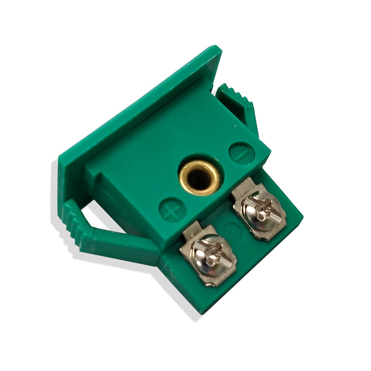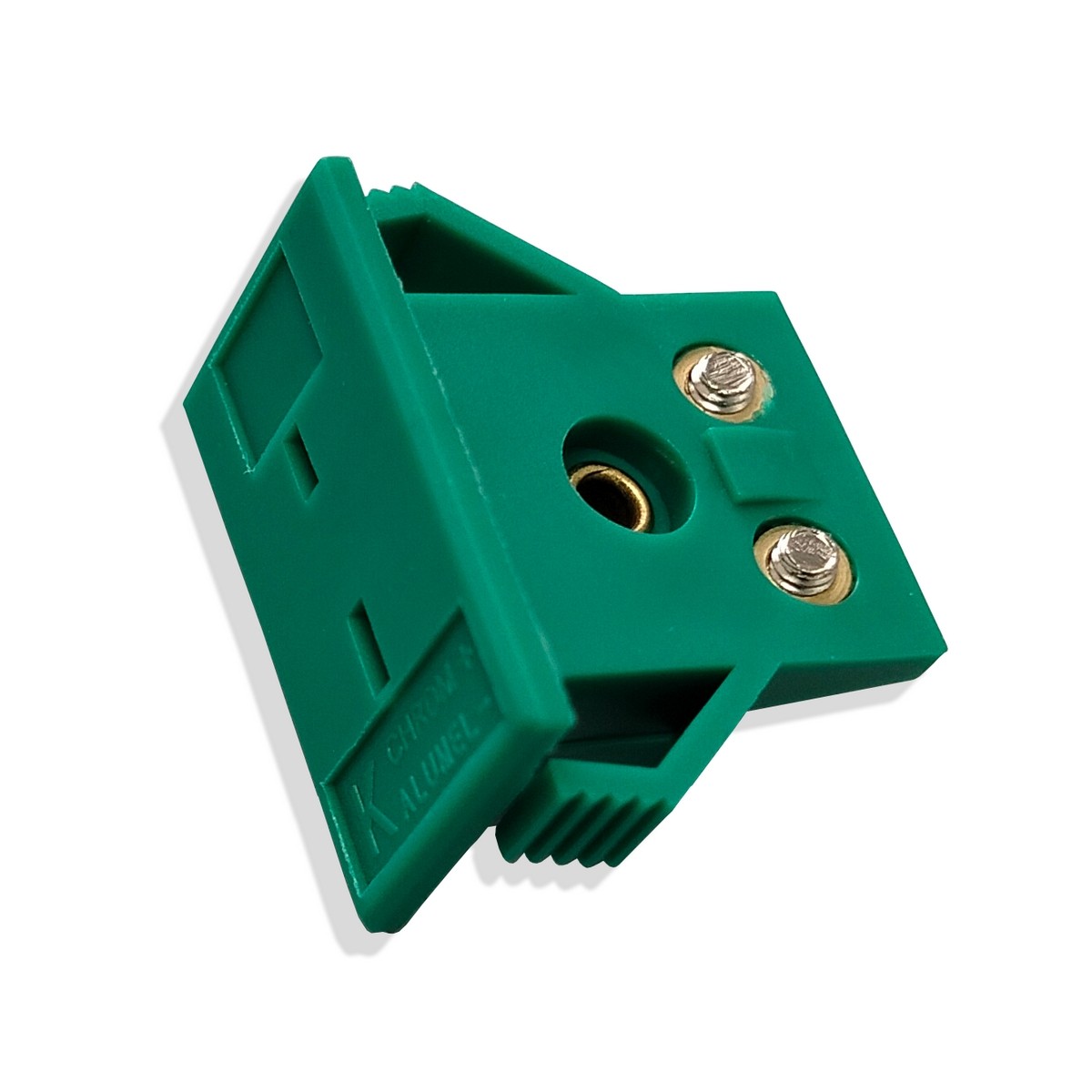Соединитель термопарный панельный Размер: миниатюрный Тип: К Розетка Материал корпуса: пластмасса Цвет:зелёный Макс. температура: +200°С Маркировка: хромель(+), алюмель(-)