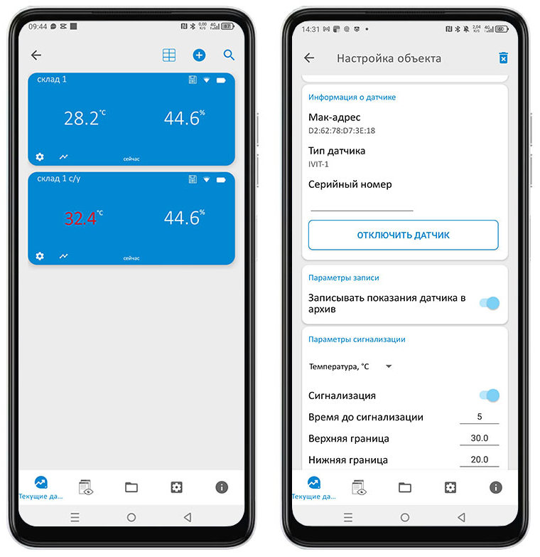 Хочется быть информированным о критической ситуации сразу же? Приложение EClerk Wireless Monitoring поможет и с этим. Отдельно для каждого датчика можно настроить верхний и нижний порог сигнализации, при пересечении которого приложение уведомит вас тревожным сигналом.
