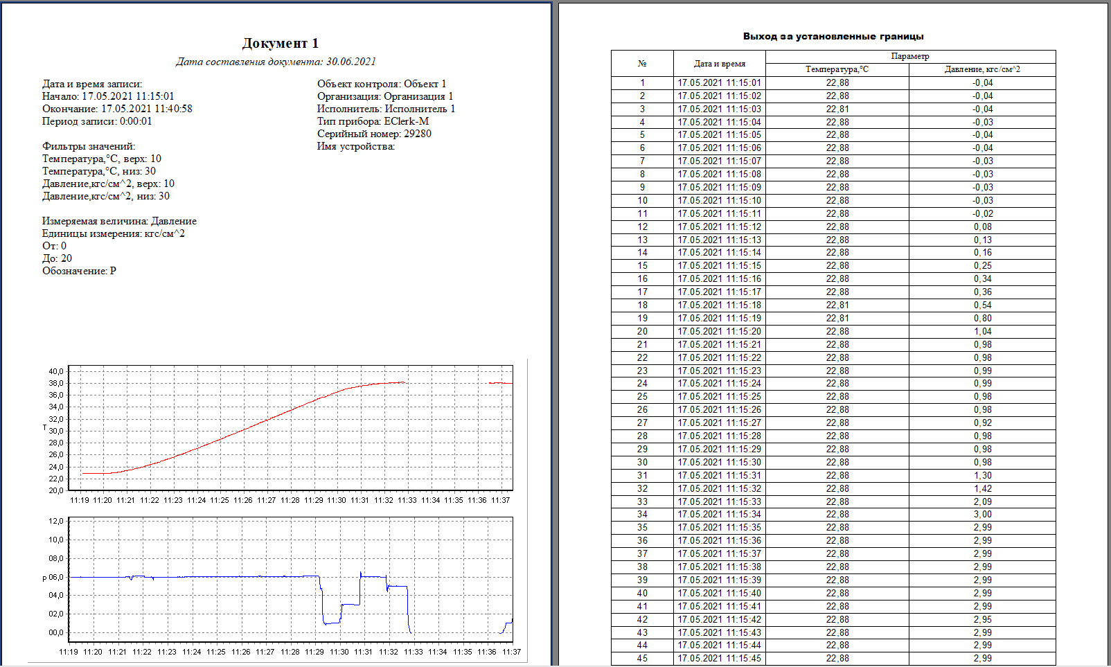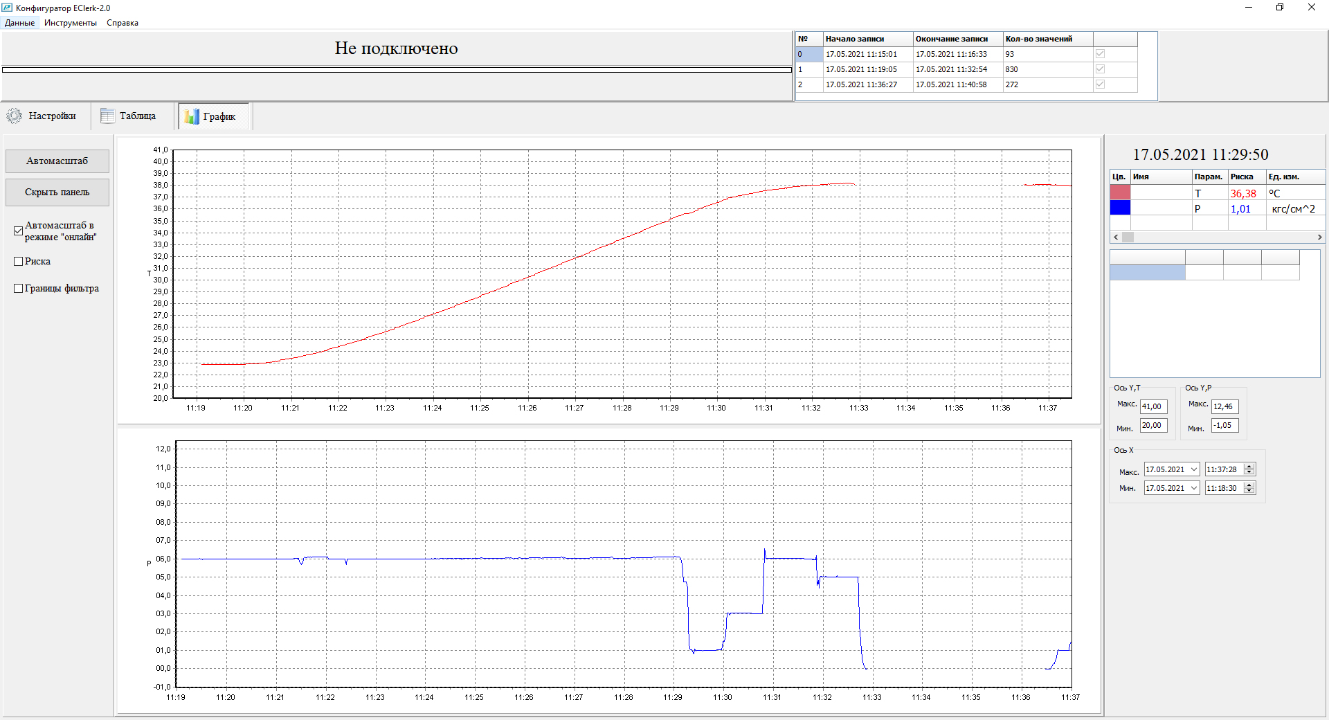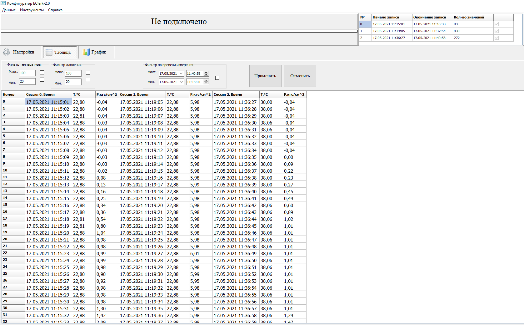 Для работы с прибором (конфигурирование, анализ данных, формирование Отчёта) имеется программа EClerk-2.0.