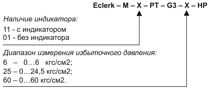 У прибора со встроенным индикатором измеренные значения избыточного давления и температуры можно посмотреть на встроенном индикаторе путём нажатия на кнопку «Просмотр», первое нажатие - избыточное давление в кгс/см2, второе нажатие- температура в °С.