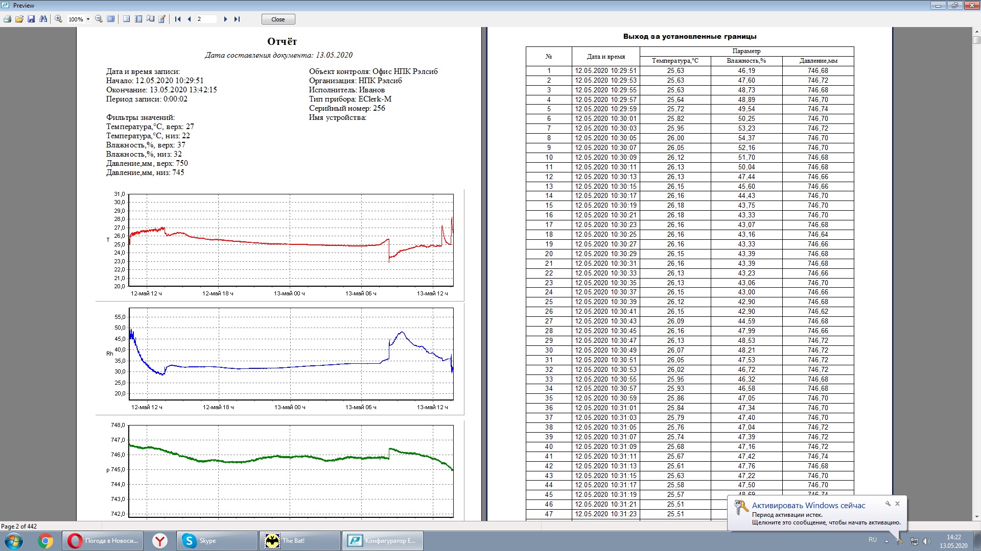 | Период регистрации | от 1 с до 24 ч (устанавливается в ПО) |