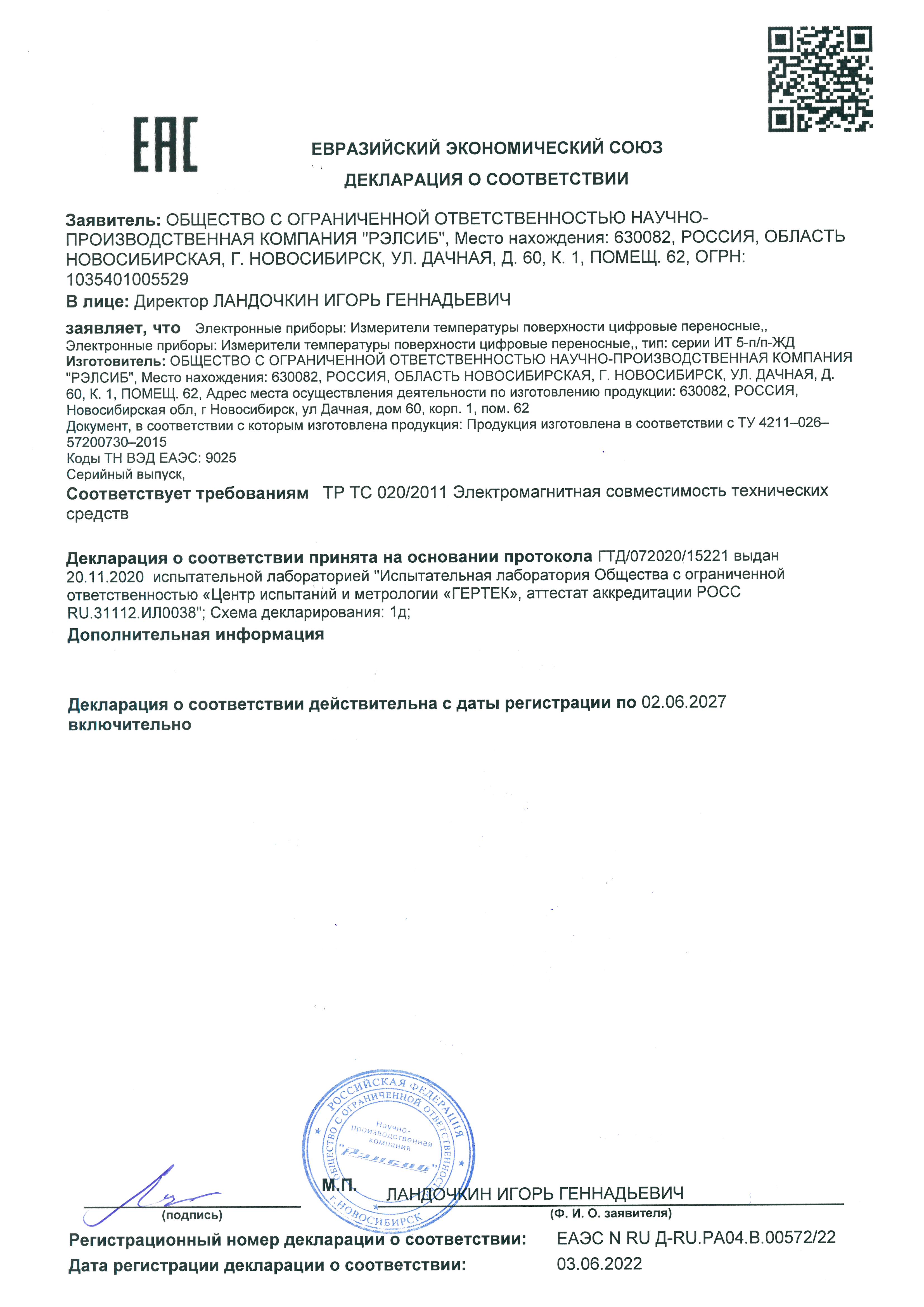 Измеритель выпускается со встроенным датчиком температуры, в качестве которого применяется термометр сопротивления из платины Pt1000 с температурным коэффициентом α=0,00385 0С–1 по ГОСТ Р 8.625–2006.