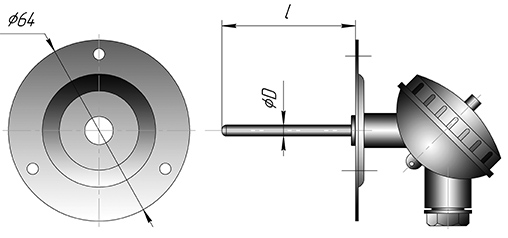 Термопреобразователь сопротивления c чувствительным элементом из платины ТСПr и меди ТСМr конструктивного исполнения Кл4-1 предназначен для контроля температуры в воздуховодах и других измеряемых рабочих средах, химически неагрессивных и не разрушающих материал защитного корпуса датчика. В том числе в системах отопления, вентиляции и кондиционирования (HVAC). Датчик температуры для воздуховода Кл4-1 снабжен круговым фланцем с тремя крепежными отверстиями и резиновым уплотнительным кольцом. Для установки на воздуховоде достаточно проделать четыре отверстия: под зонд и винты и закрепить датчик при помощи трех самонарезных винтов.