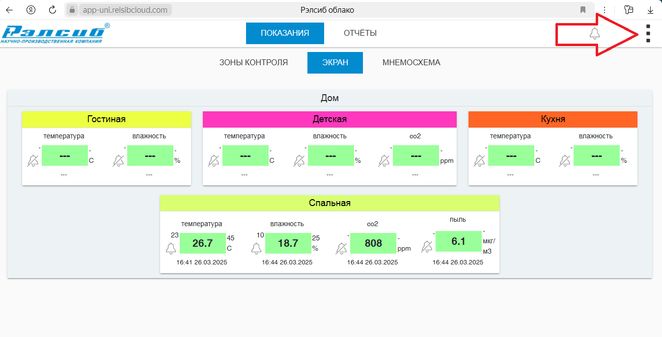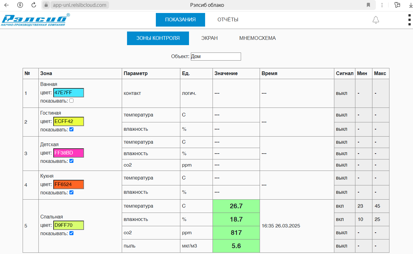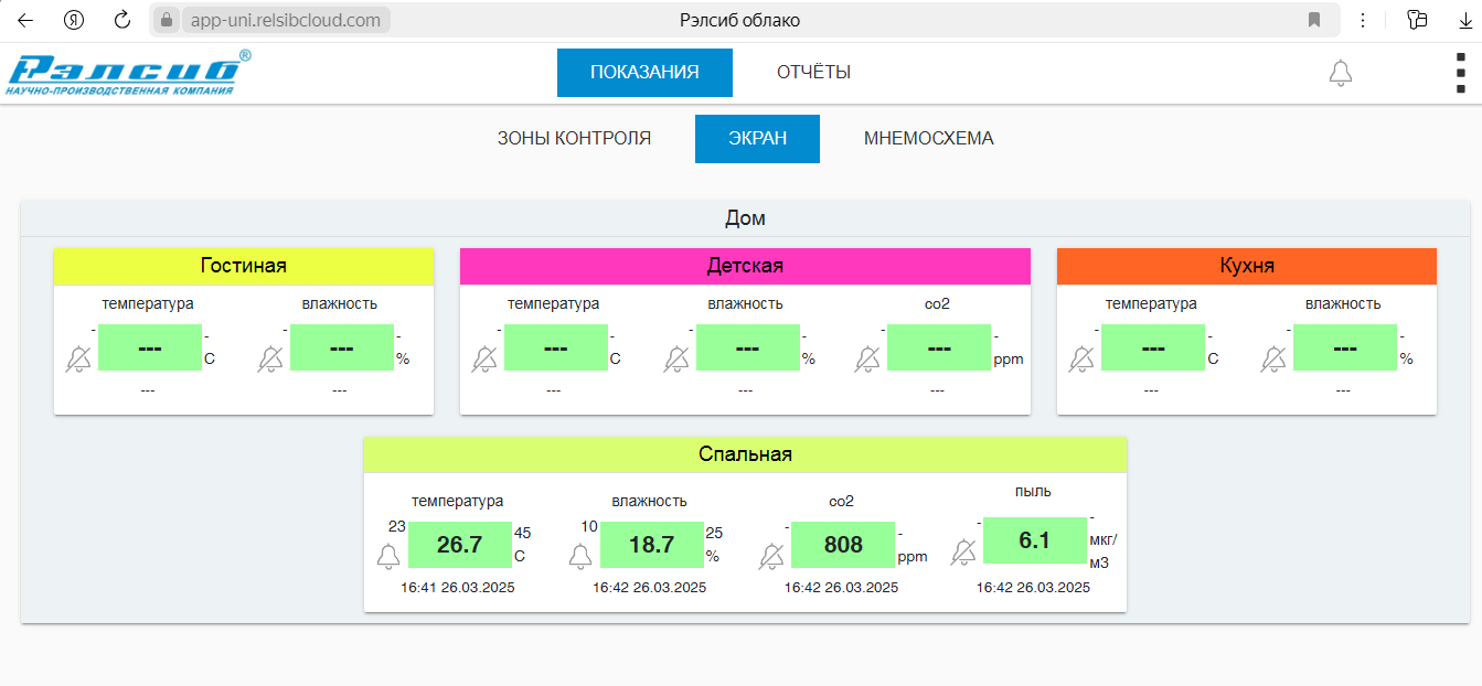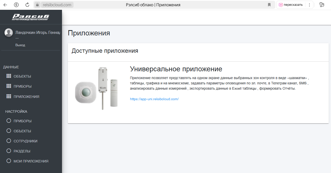 Зайдите в WEB приложение app-uni.relsibcloud.com с браузера или с облачного сервиса relsibcloud.com после того, как вы настроили в нём получение данных со своих объектов контроля (логин и пароль облачного хранилища подходят и для данного приложения).